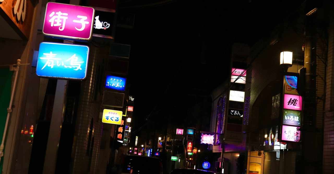 夜の飲み屋街とあふれるネオンの光の写真 フリー素材は ぱくたそ 写真を無料ダウンロード